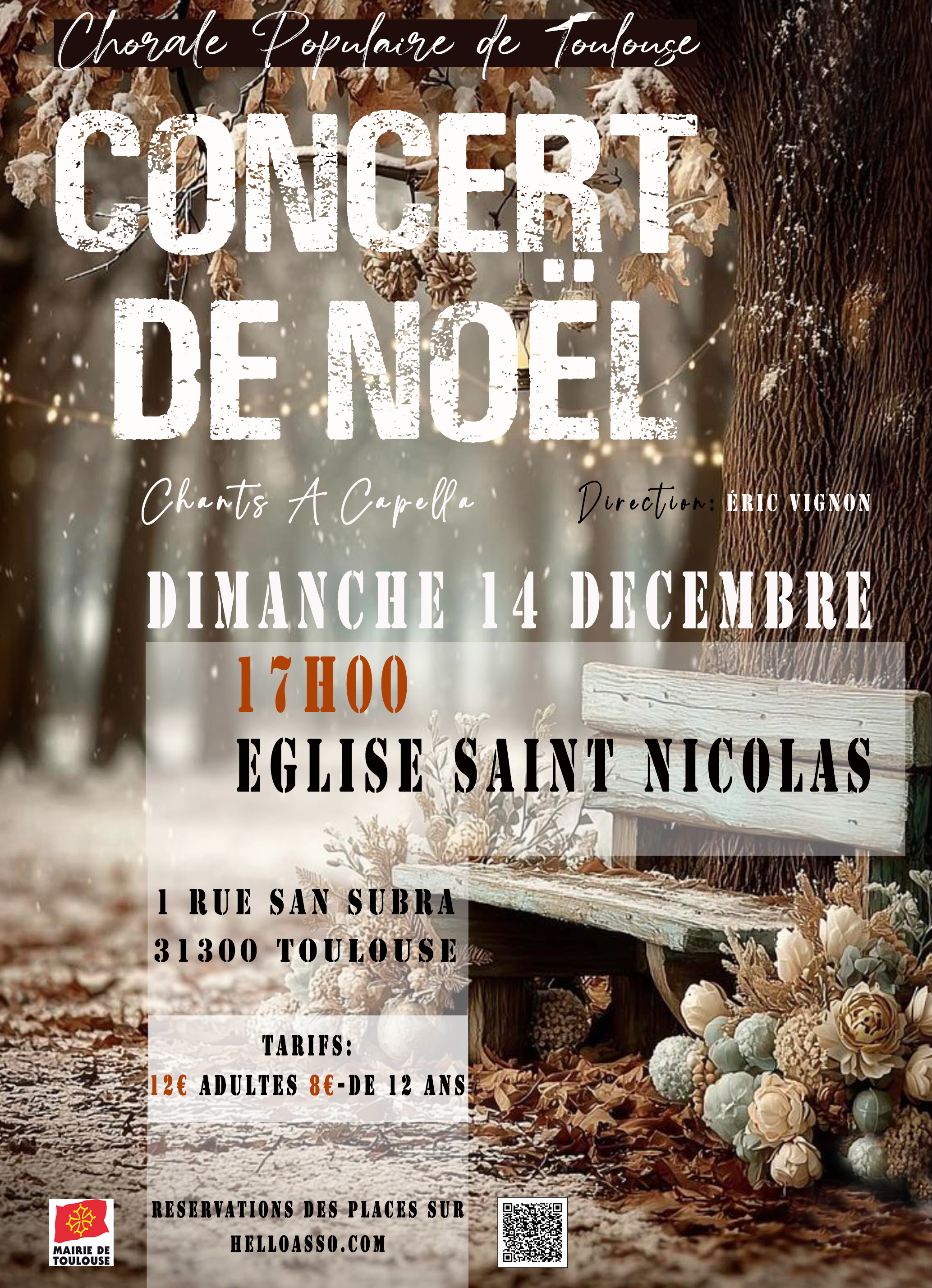 Billeterie : https://www.helloasso.com/associations/chorale-populaire-de-toulouse/evenements/concert-de-noel-14-decembre-2025